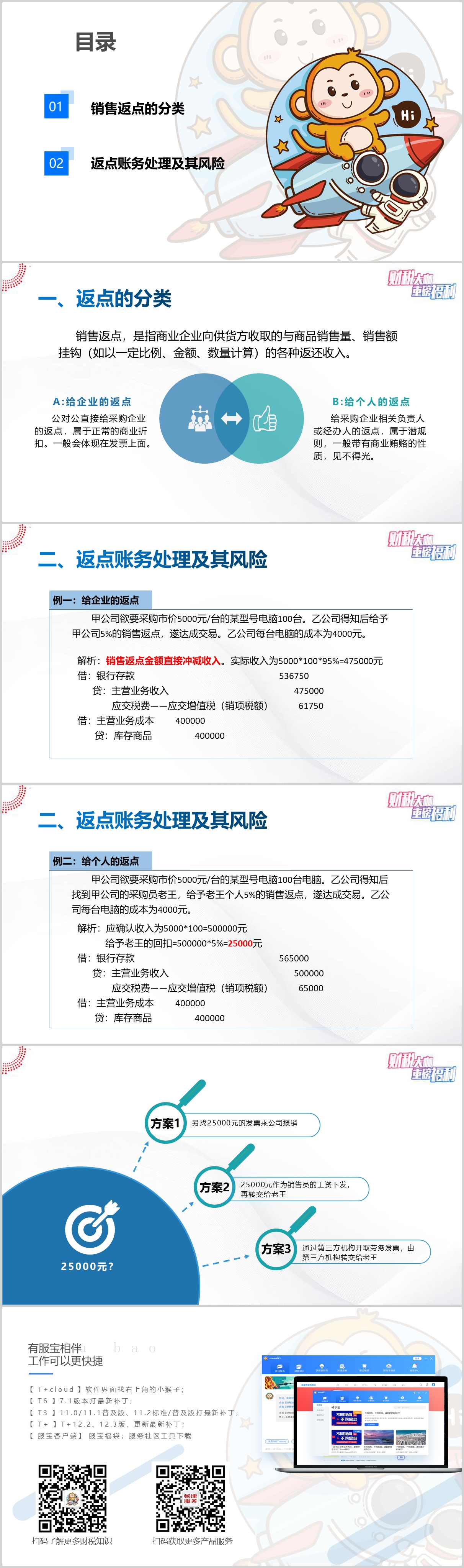 給個(gè)人的返點(diǎn)因?yàn)殡y以取得發(fā)票,不好直接入賬。課程中列舉了常見(jiàn)了三種方案: