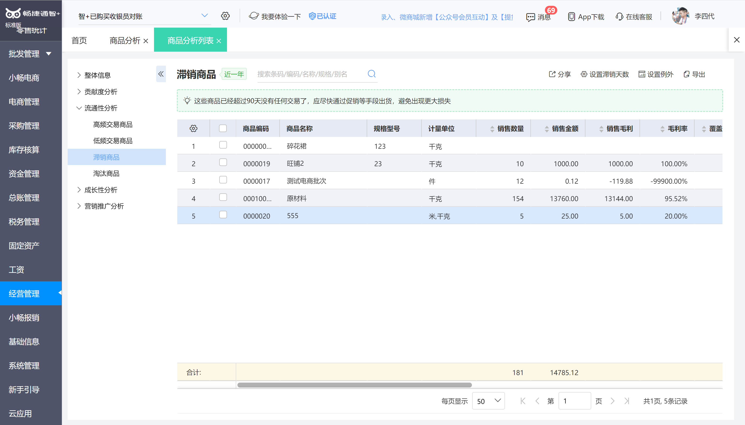 通過滯銷品分析,可以統(tǒng)計出近90天之內(nèi),沒有任何銷售行為的商品